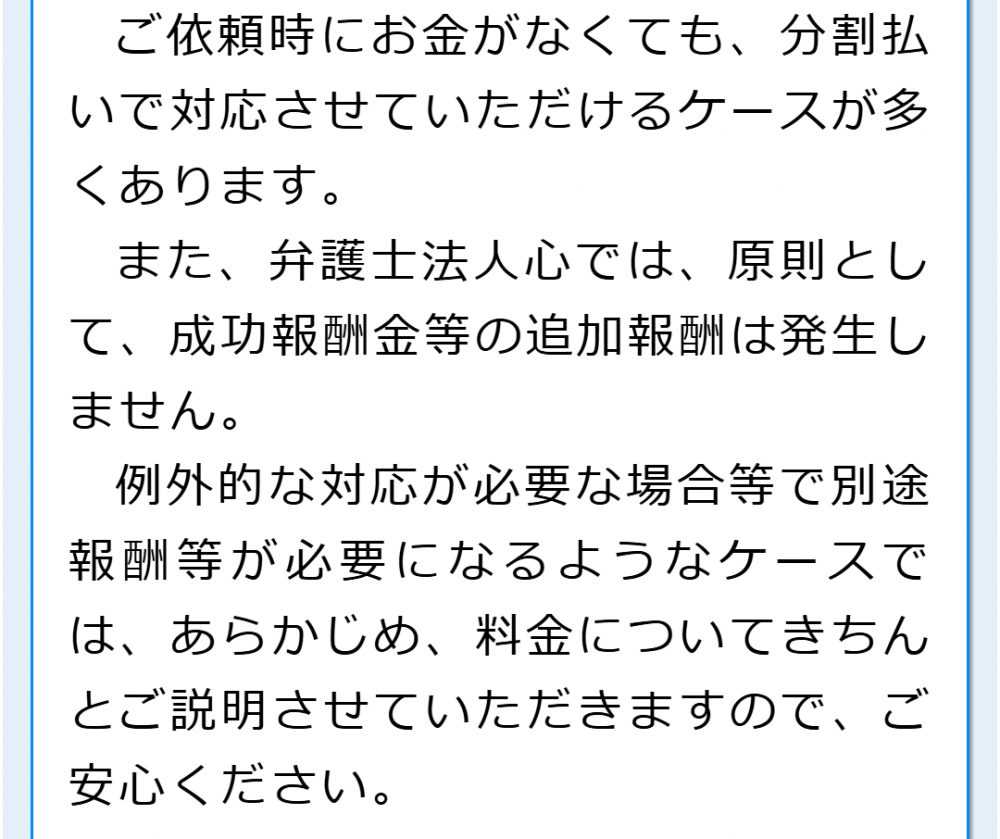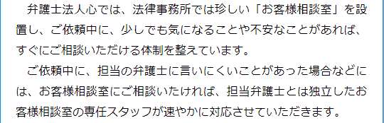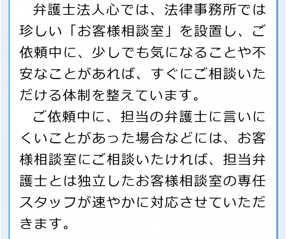 弁護士法人心では、そのような事態を避けるため、弁護士ごとに担当分野を設定しています。