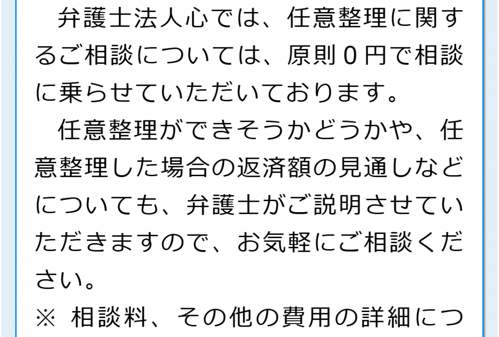 当法人からお客様へのお知らせがある際はこちらにてご案内させていただきます。任意整理のご相談をお考えの方もご一読ください。