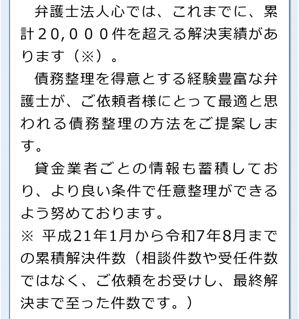 当法人は、破産や個人再生も数多く扱っているため、任意整理以外の手続きにも精通しており、このことが逆説的に任意整理を得意とする理由となっています。
